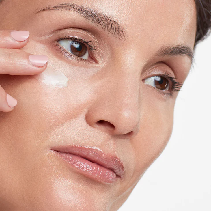 • Apply a half pea-sized amount to the eye contour and above the crease of the eyelid, gently patting with your ring finger until absorbed.
